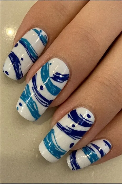 4. Wave Nail Art on White